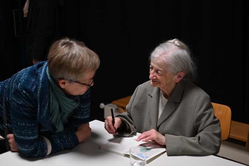 Henriette Kretz beim Signieren ihrer Biografie bei der Abendveranstaltung in der IGS Kurt Schumacher Ingelheim