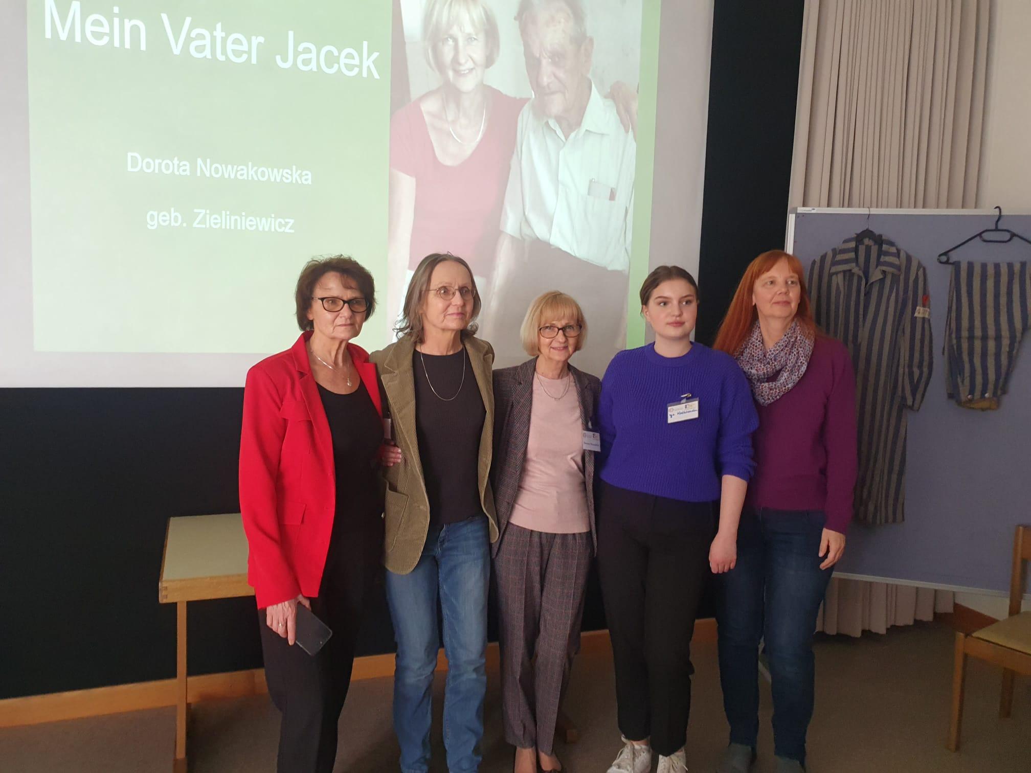 Wie in Zukunft das Vermächtnis der Zeitzeug*innen weitergegeben werden kann, ist eine Frage, die viele in der Erinnerungsarbeit Engagierte umtreibt. Eine der vielfältigen neuen Formen ist die Möglichkeit, dass Nachkommen der Überlebenden die Geschichte als Zeugen ihrer Eltern und Großeltern weitererzählen. So tut dies auch Dorota Nowakowska, die Tochter des Auschwitz-Überlebenden Jacek Zieliniewicz, die nun schon zum vierten Mal im Bistum Mainz zu Gast war. Sie erzählt die Geschichte ihres Vaters und setzt damit sein Engagement als Zeitzeuge fort. Begleitet wurde sie von ihrer Schwester Wieslawa Melwińska und ihrer Enkelin Iga Koźlakowska. Die junge Frau kannte ihren Urgroßvater, der 2018 im Alter von 92 Jahren verstarb, gut und begleitete ihn bei seinem letzten Besuch in der Gedenkstätte Auschwitz-Birkenau. Vielleicht wird auch sie in Zukunft das Erbe Jacek Zieliniewicz' weiter tragen.